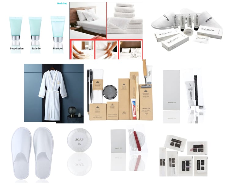 From essential disposable items like toiletries, slippers, and bathroom amenities to specialized offerings such as laundry bags, vanity kits, tablet soaps, and sanitary bags, each product is meticulously chosen for its convenience and eco-friendliness. At Mdain Supplies, we believe in providing not just amenities but an ethos of sustainable luxury.